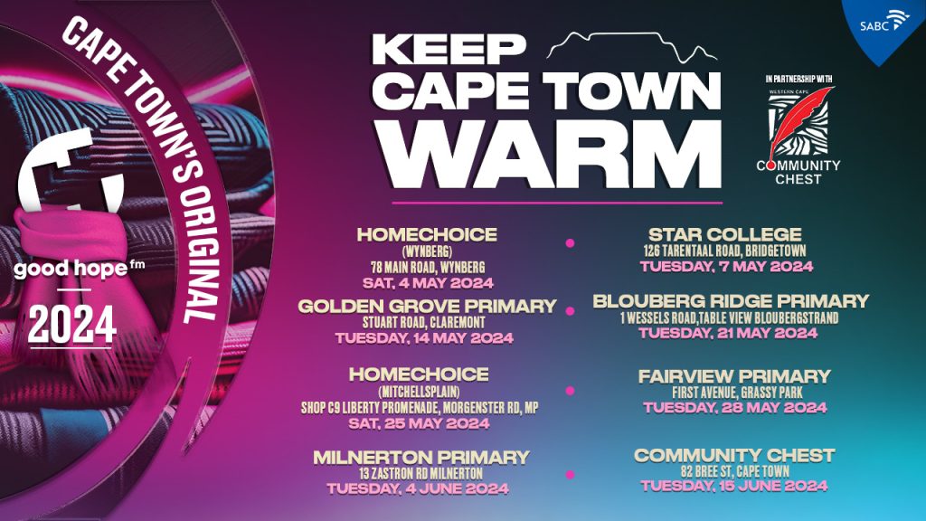 Good Hope FM, Cape Town’s Original, along with Community Chest and HomeChoice, are on a mission to get as many blankets and non-perishable food items to those in desperate need this winter with ‘Keep Cape Town Warm’ – #GoodHopeFMKCTW24. For the past 15 years, Capetonians have been passionately rallying behind this phenomenal cause, donating blankets […]