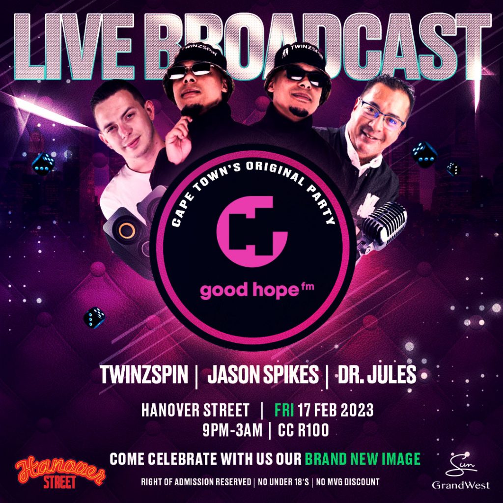 Join us at Cape Town’s biggest party on Friday as we host a LIVE broadcast from @hanoverstreetnightclub at @grandwestsa , with @twinzspin’s Jade and Shad, @djdrjules and @jasonspikes101!